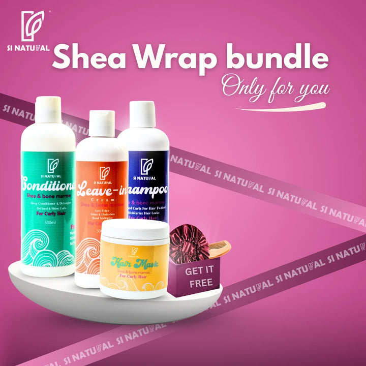 باقة Shea Wrap Bundle مصممة خصيصًا للشعر الجاف، الهايش، الكيرلي، والمتقصف—لترجع له الحيوية، النعومة، واللمعان خطوة بخطوة.